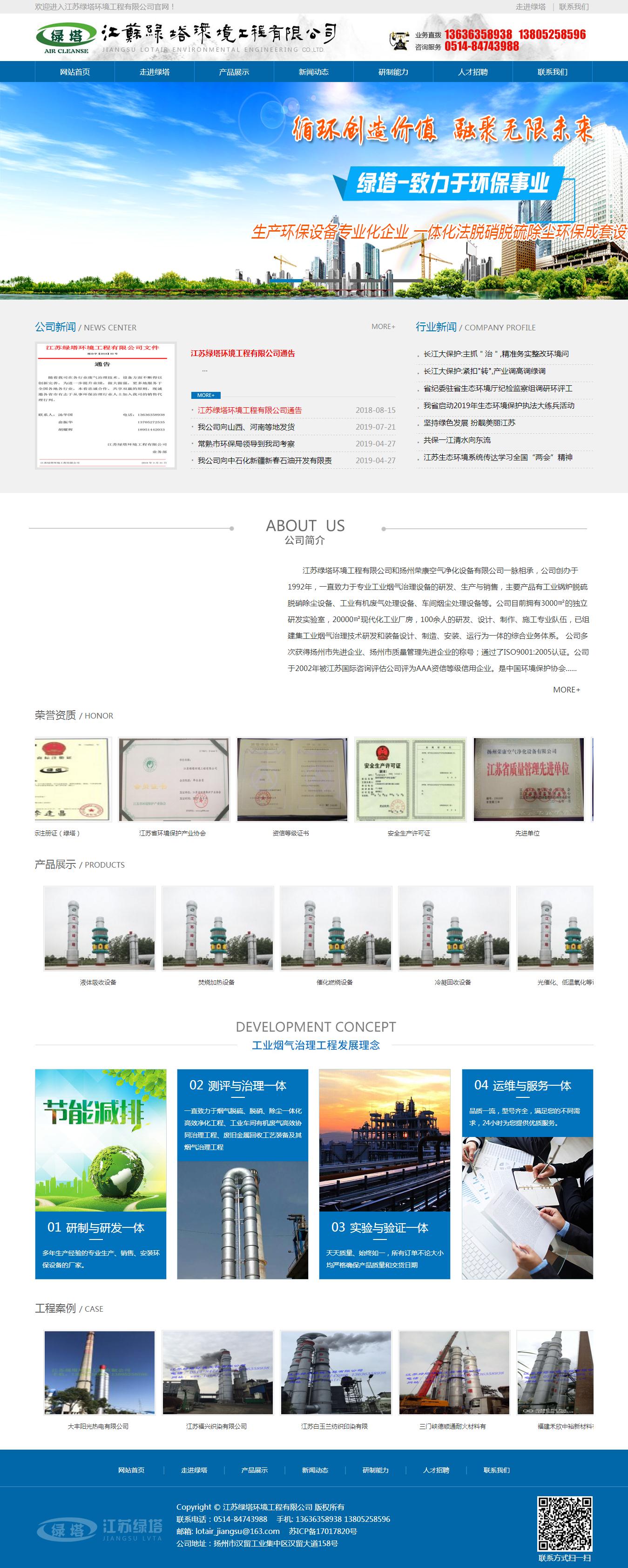 江苏绿塔环境工程有限公司 江苏绿塔环境工程有限公司和扬州荣康空气净化设备有限公司一脉相承,公司创办于1992年,一直致力于专业工业烟气治理设备的研发、生产与销售,主要产品有工业锅炉脱硫脱硝除尘设备、工业有机废气处理设备、车间烟尘处理设备等。公司目前拥有3000㎡的独立研发实验室,20000㎡现代化工业厂房,100余人的研发、设计、制作、施工专业队伍,已组建集工业烟气治理技术研发和装备设计、制造、安装、运行为一体的综合业务体系。 公司多次获得扬州市先进企业、扬州市质量管理先进企业的称号;通过了ISO9001:2005认证。公司于2002年被江苏国际咨询评估公司评为AAA资信等级信用企业。 查看网站Service